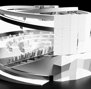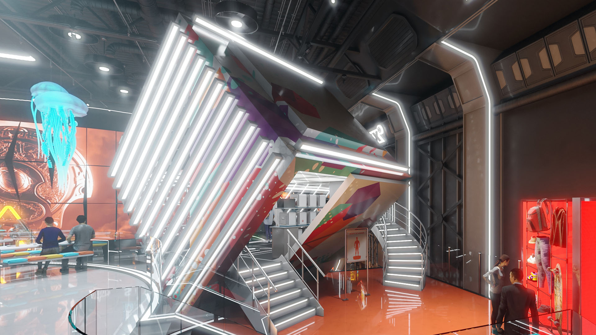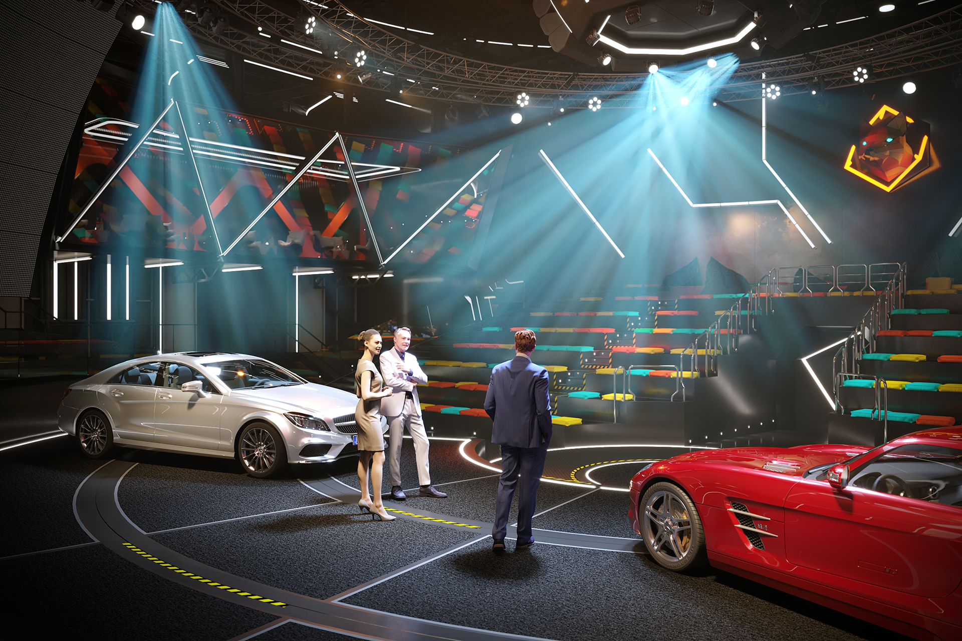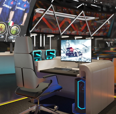 E-Sport ist eine boomende Branche, der in Deutschland zu wenig Beachtung geschenkt wird. Noch. Der Kunde Ruhm Service trat mit der Idee an uns heran, innerstädtische Flächen in E-Sport-Hallen zu verwandeln. Wir sollten die Idee unter dem Interimsnamen "FoxBox" möglichen Investoren nahebringen – und entwarfen dafür gleich die gesamte Hallenarchitektur mit ihren Attraktionen.