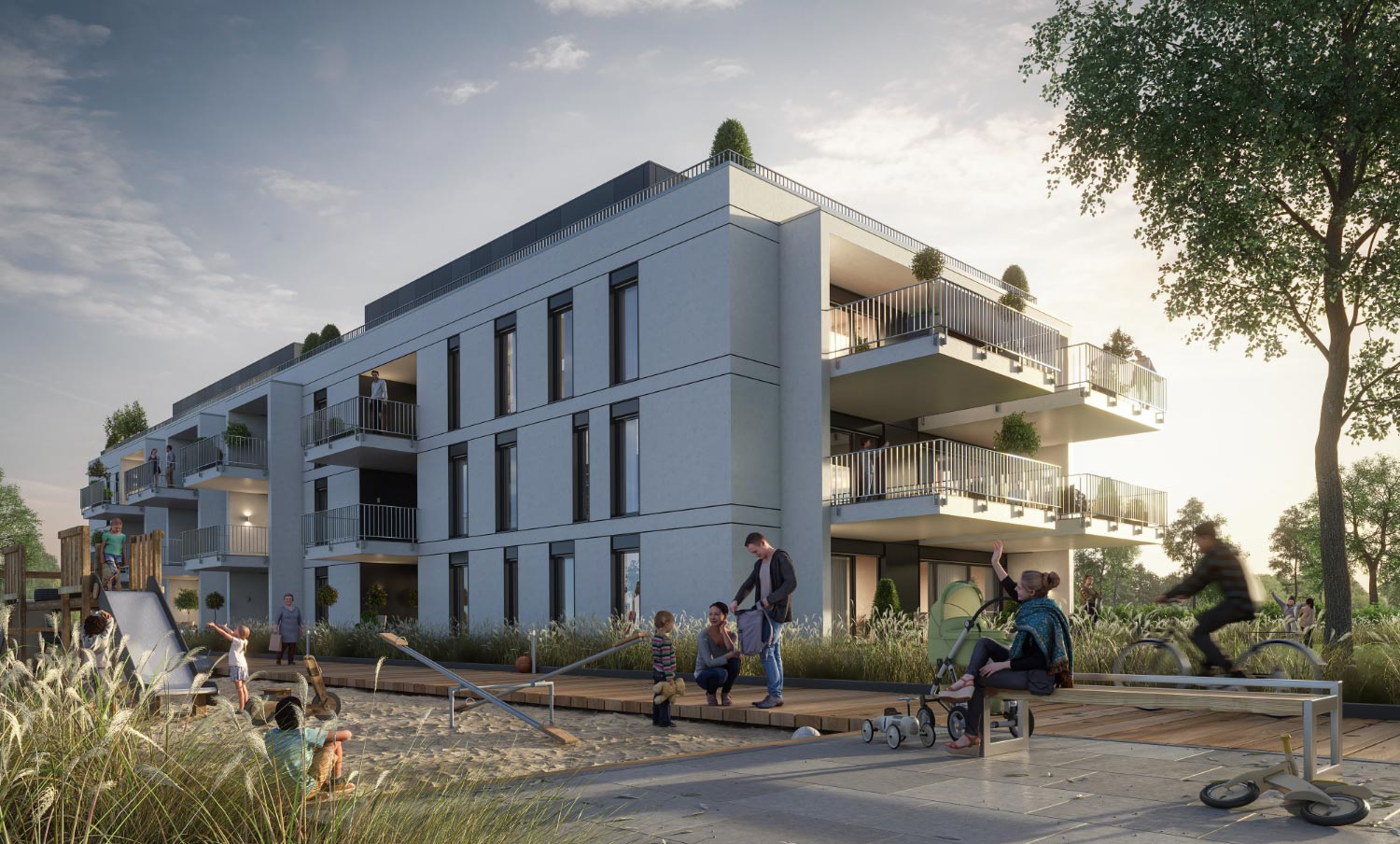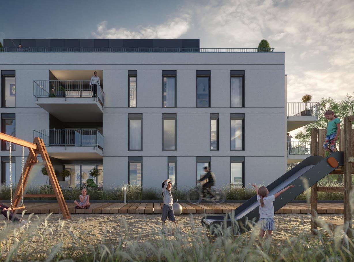 Zu den wichtigsten Qualitätsmerkmalen einer Visualisierung gehört es, die Lebensqualität und das zukünftige Lebensgefühl eines Objektes transportieren zu können. Für einen Projektentwickler aus Hamburg und seine familienfreundlichen Eigentumswohnungen sollte Urban Soul genau dies erreichen – und bescherte dem Auftraggeber zahllose Anfragen gleich zu Vertriebsstart.