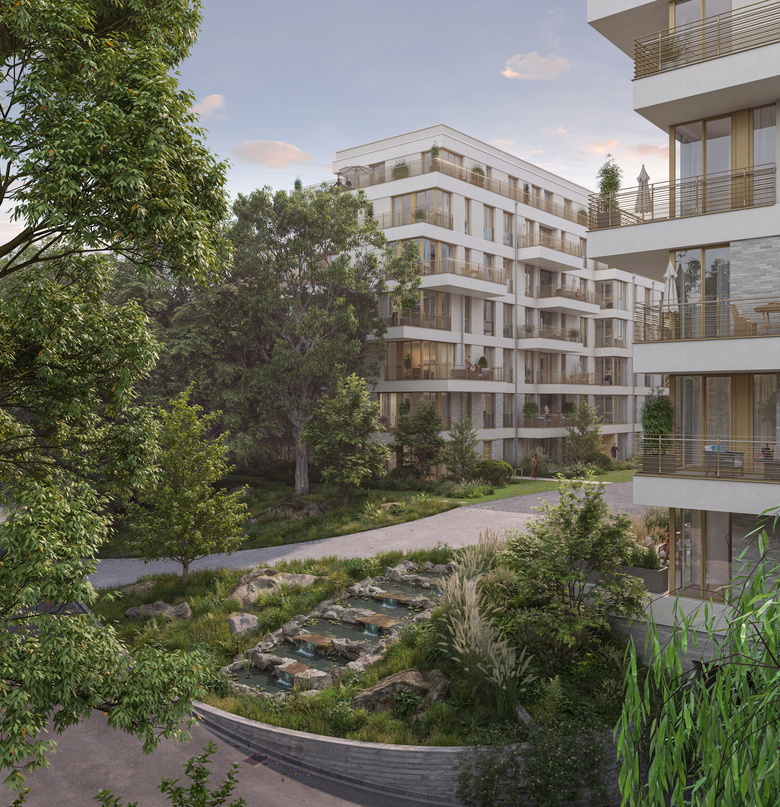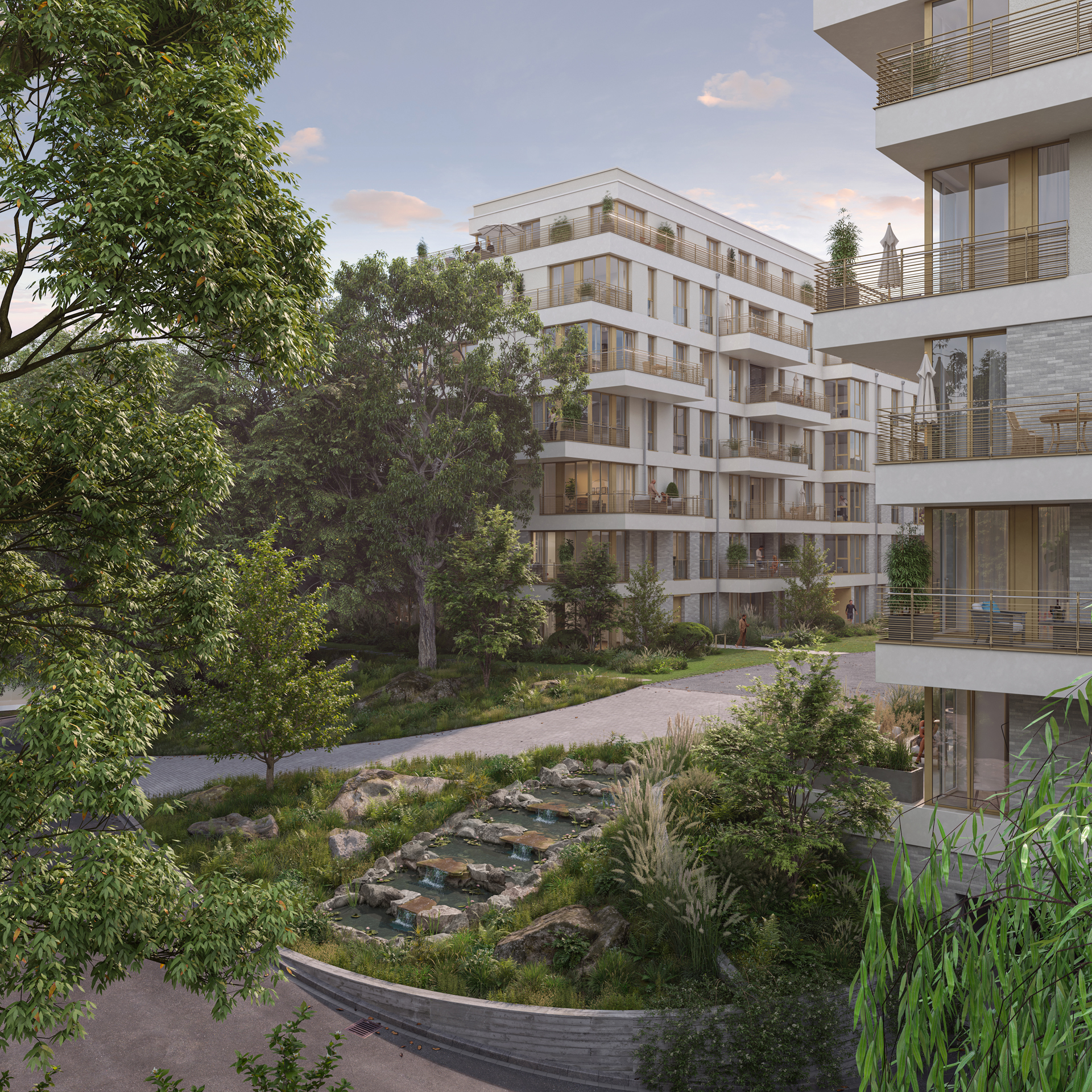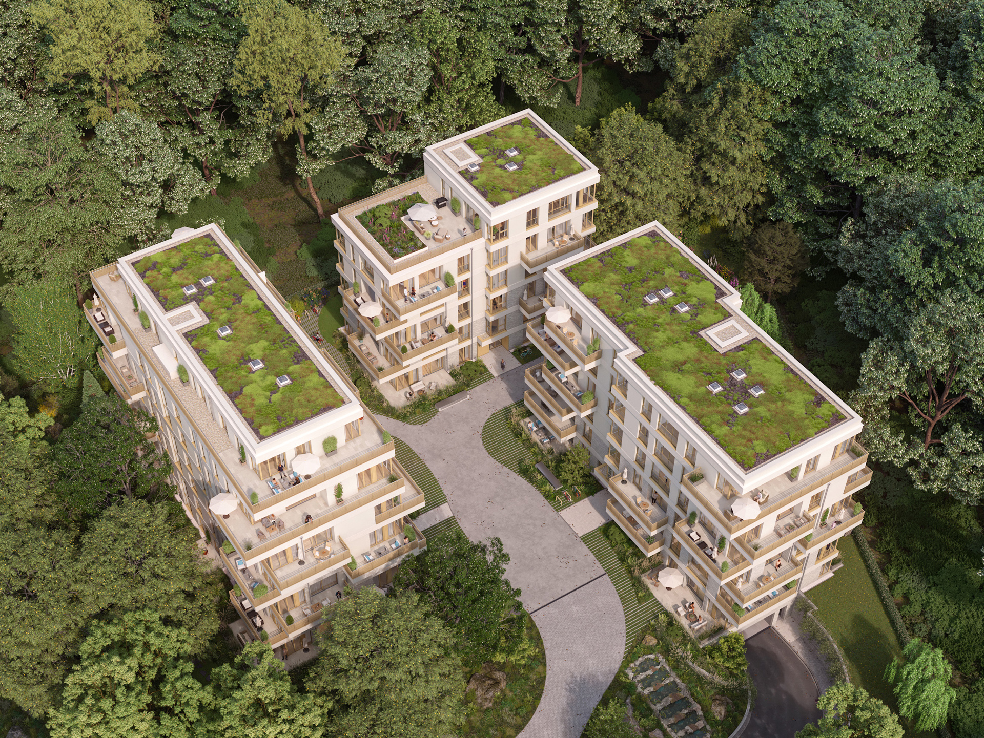 Künstlich, oder natürlich? Natürlich künstlich! Bei der Projektentwicklung DREIKLANG am Grafenberger Wald, spielt die realistische Abbildung der Natur, des ehrwürdigen Baumbestandes und damit die traumhafte Aufenthaltsqualität eine mindestens ebenso wichtige Rolle, wie die Darstellung der Architektur.