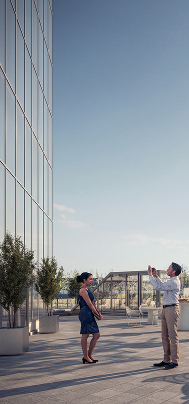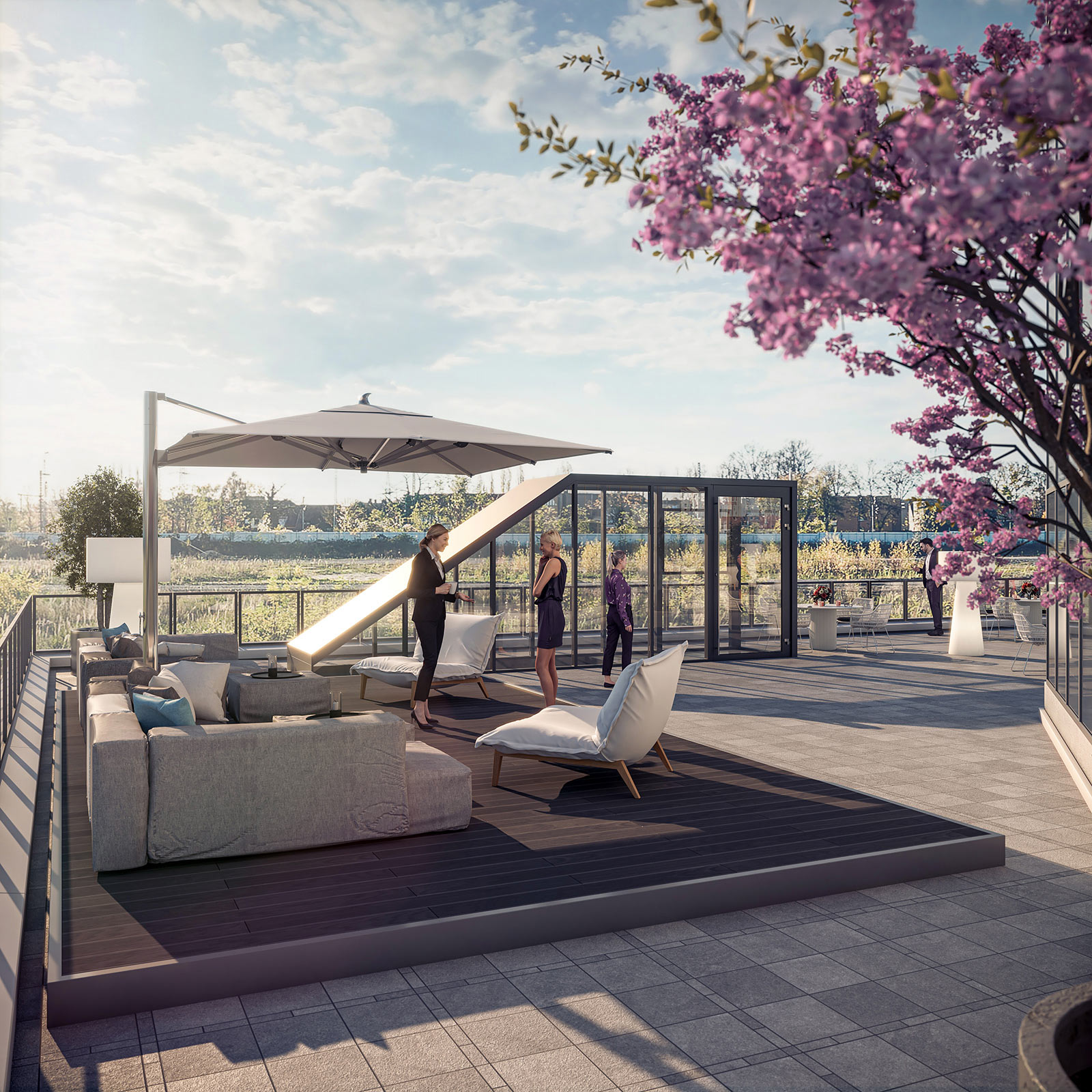 Die Visualisierungen zeigen sowohl die zukünftige Architektur, als auch die Nutzungsmöglichkeiten der Dachterrasse sowie der Außenbereiche – und damit den Mehrwert für die zukünftigen Bewohner des Quartiers.